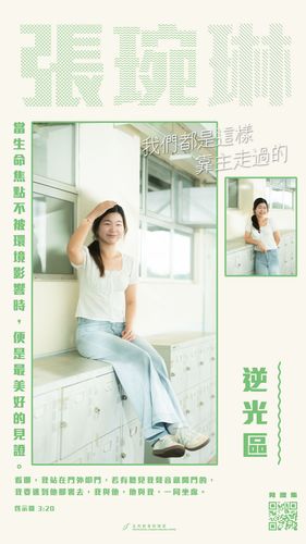 「對於習慣與人比較的我,心裡總是有種不甘心,覺得自己應該可以做得更好,但是,小學時的好成績所產生的自大,令我並不容易傾盡全力去做好一件事。同時,因為我看到自己成績比別人差,慢慢產生自卑,覺得自己什麼都不夠好……」