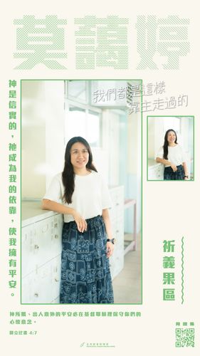 2003年因父親病重,我感到壓力很大,有位信主的同事帶我去她的教會,感受到主的大能和引領,我當決志信主了。父親過世後,因着要照顧母親,我選擇了一間在家附近的教會返崇拜。可能是人比較內向,十幾年也只是參加崇拜,沒有參加小組......